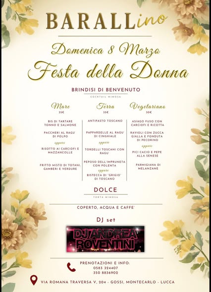Domenica 8 Marzo serata speciale al BARALLino con menù dedicati (Mare, Terra o Vegetariano), musica e DJ set per festeggiare insieme.